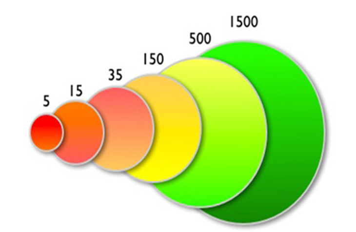 邓巴数字:人类社交网络的节点不会超过150个,即和你保持友好关系的人在150人以内。