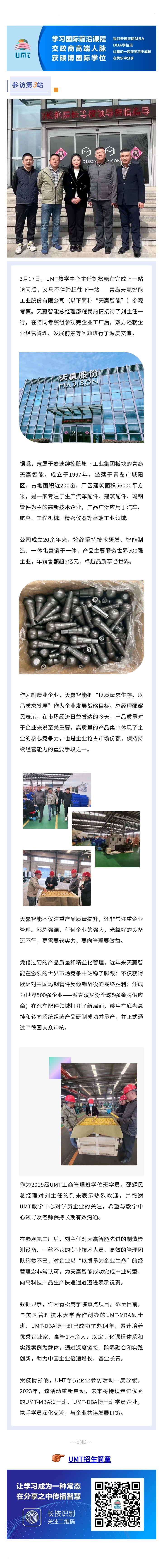 UMT2023参访第3站|教学中心主任刘松艳一行前往青岛天赢智能工业股份有限公司参观考察