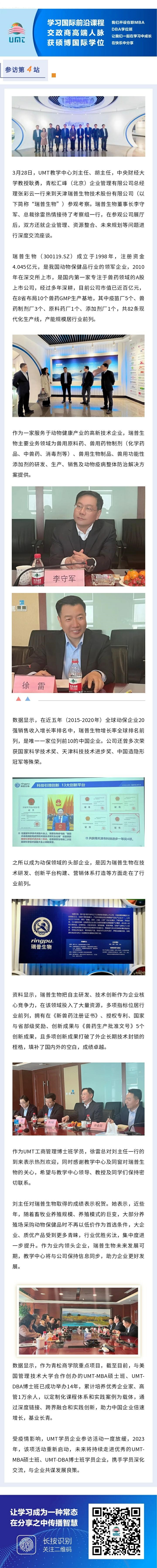 UMT2023参访第4站|教学中心主任刘松艳、胡昆鹏一行到天津瑞普生物技术股份有限公司参观考察