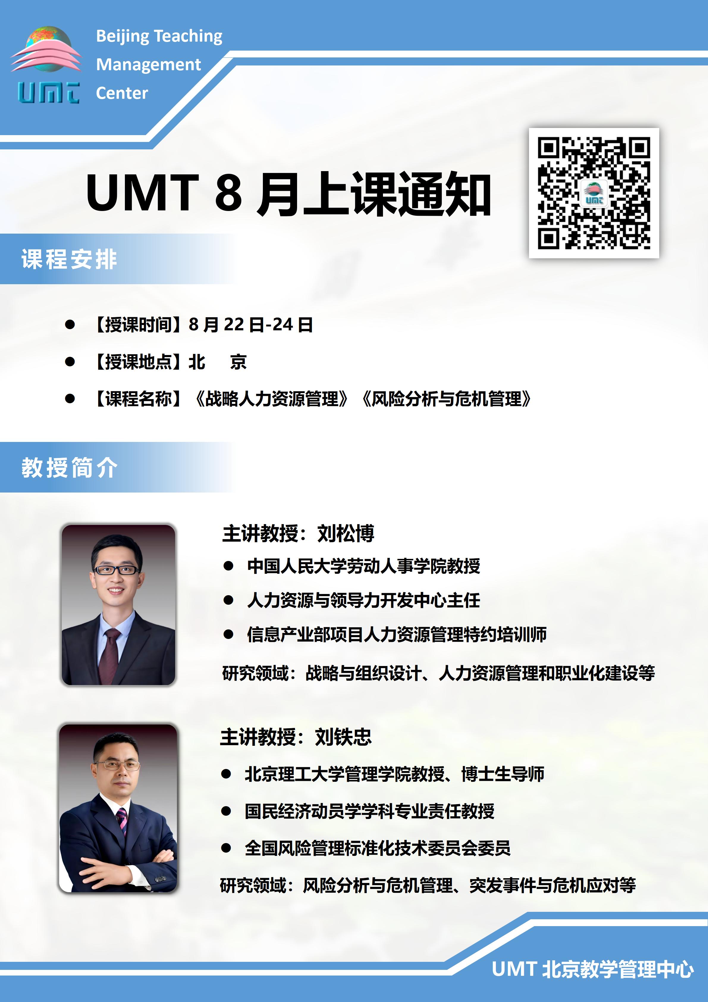 UMT工商管理学位班2025年8月份上课通知