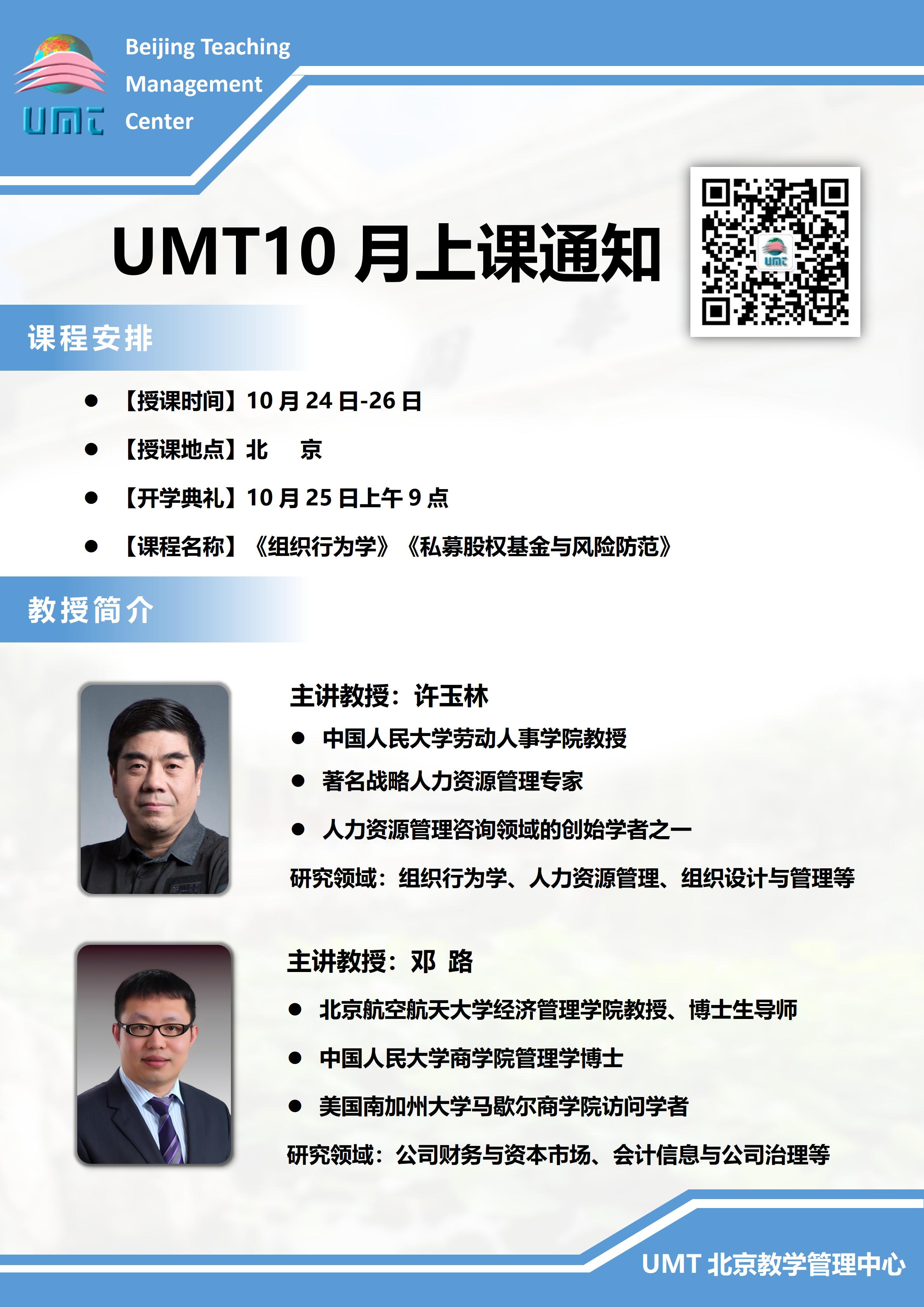UMT工商管理学位班2025年10月份上课通知